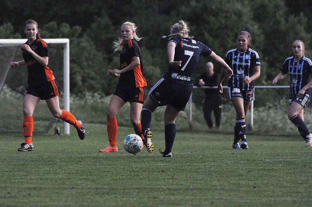 Vi visste på förhand att hemmalaget ville spela tufft och nära inpå så vi var förbereda på detta och svarade upp till fighten. Vi hade chans på chans och lite då och då fick hemmalaget någon kontring men vårt försvar klarade det galant. Maja Sandberg på högerbacken går från klarhet till klarhet och var riktigt bra idag igen. Men bäst vill jag nog säga var Jennifer Karlsson, inte bara för tre mål utan när hon hade bollen så hände det något konstruktivt mest hela tiden, mycket bra! Jennifers mål kom i 36 min, 38 min och 68 min och där emellan hann hon med något stolpskott också... I den 82 min så kom ett efterlängtat mål gjort av Erika Ludvigsson till 0-4 och så slutade matchen också.